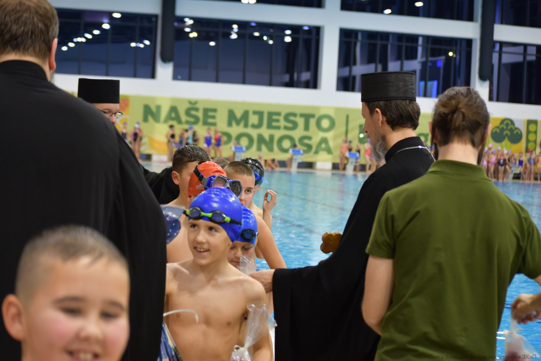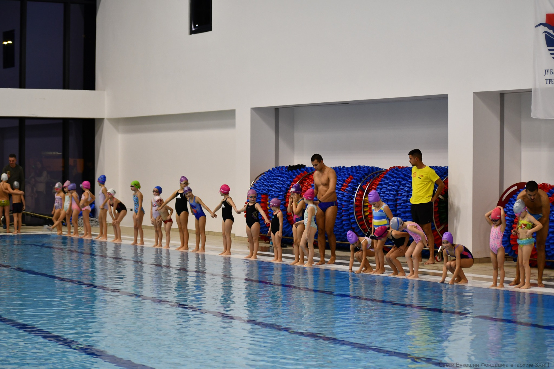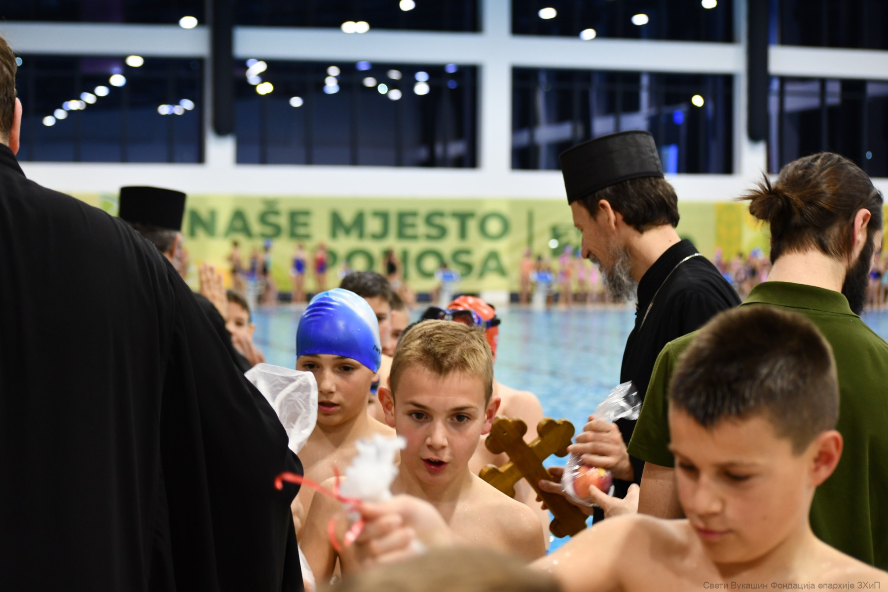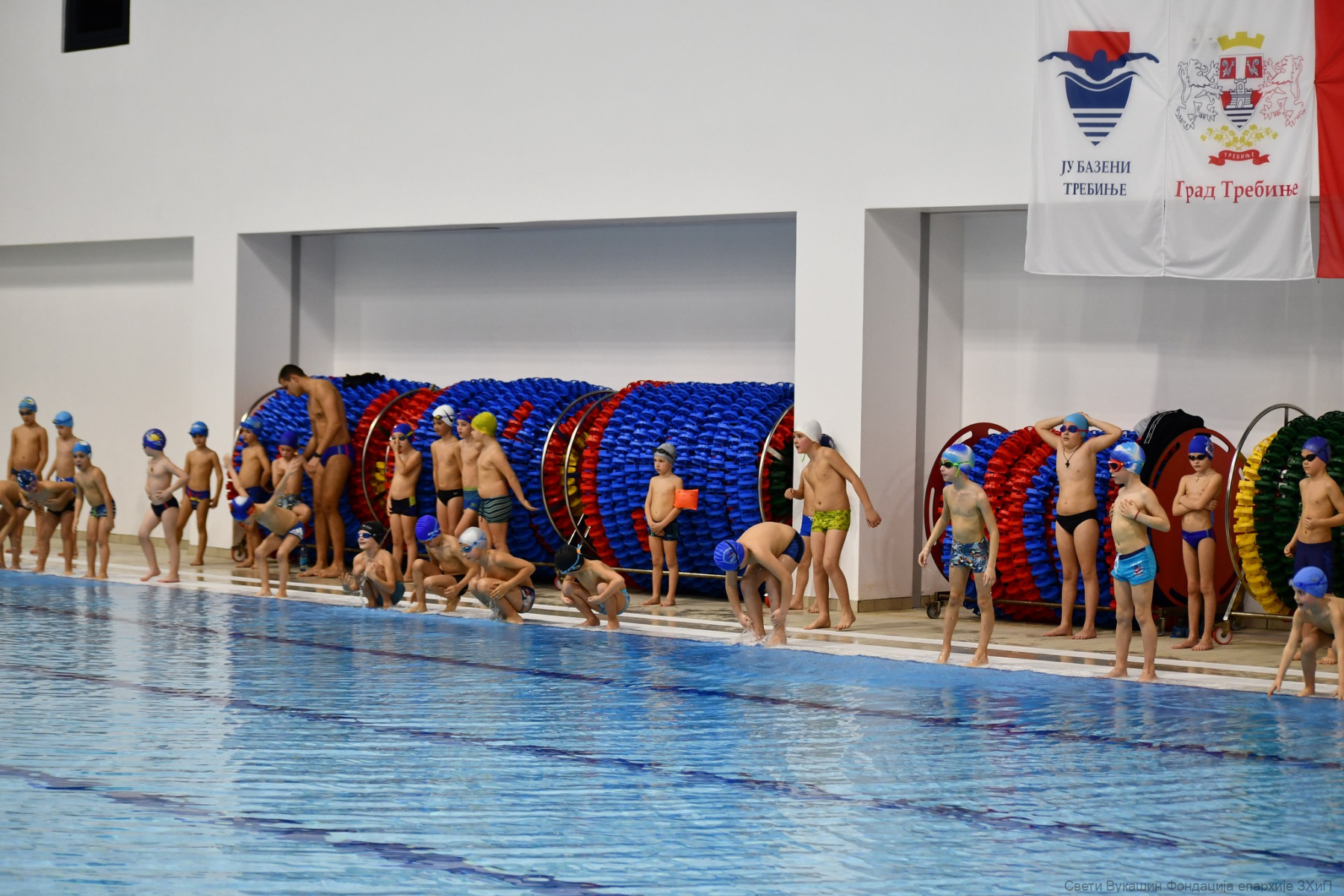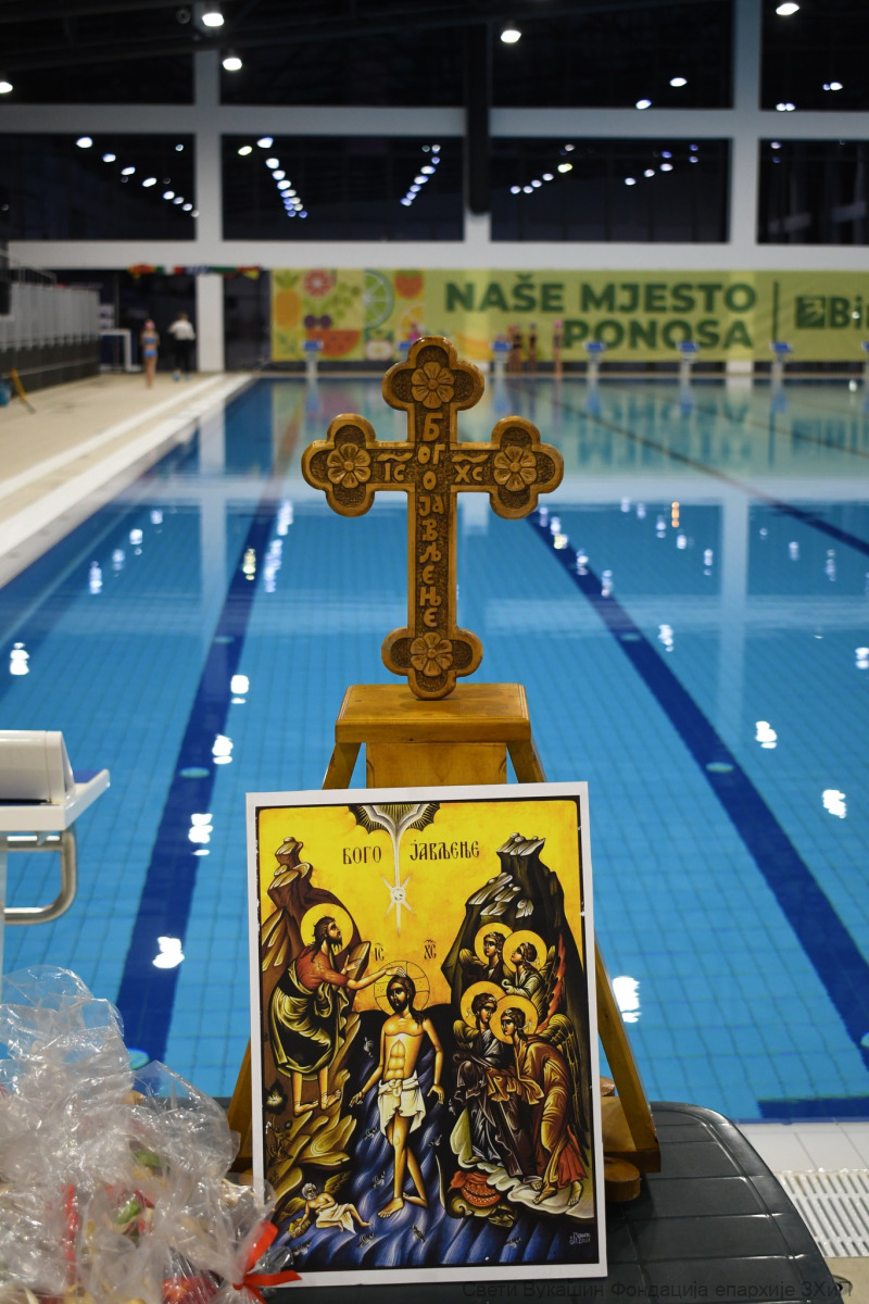Фондација „Свети Вукашин“ трећу годину заредом организовала је Богојављенско пливање за Часни крст за најмлађе учеснике у затвореном базену у Требињу.