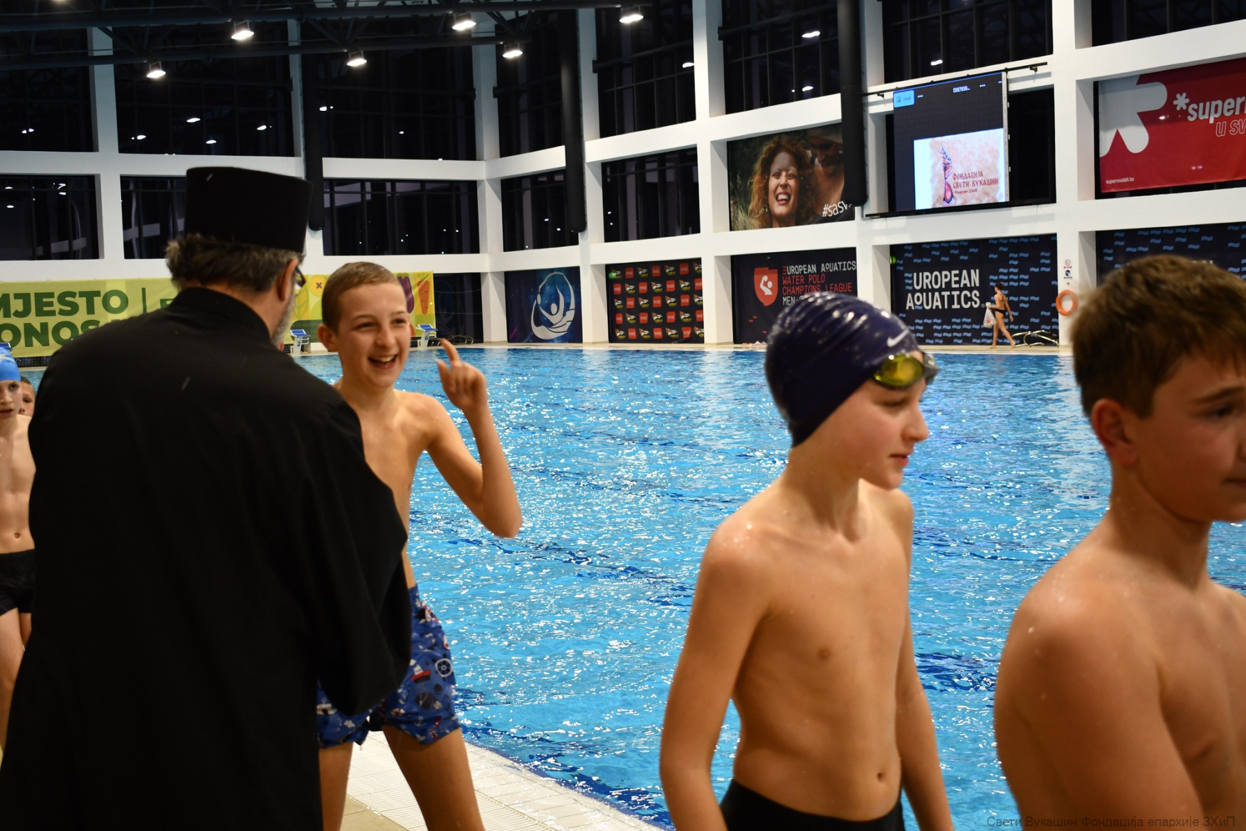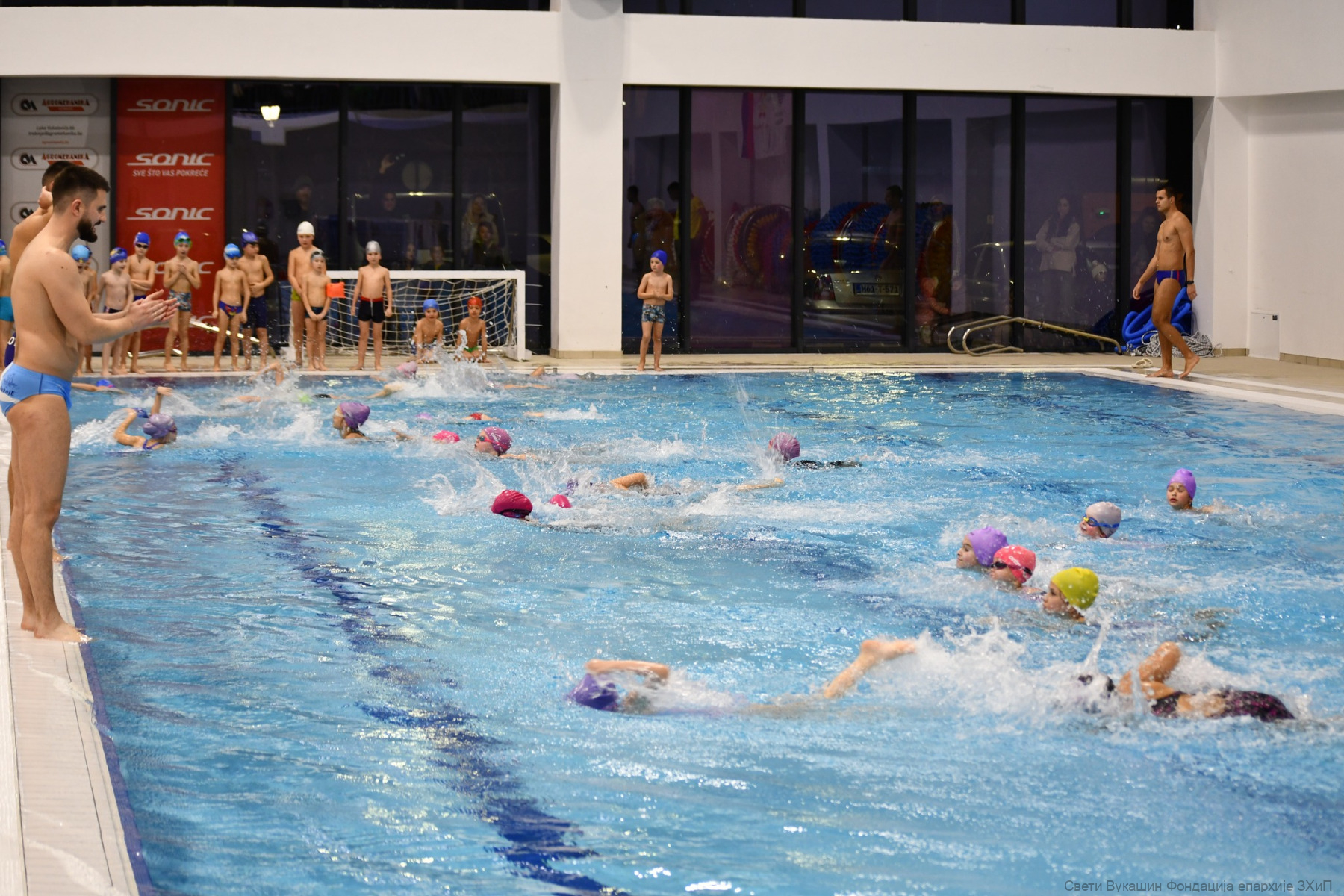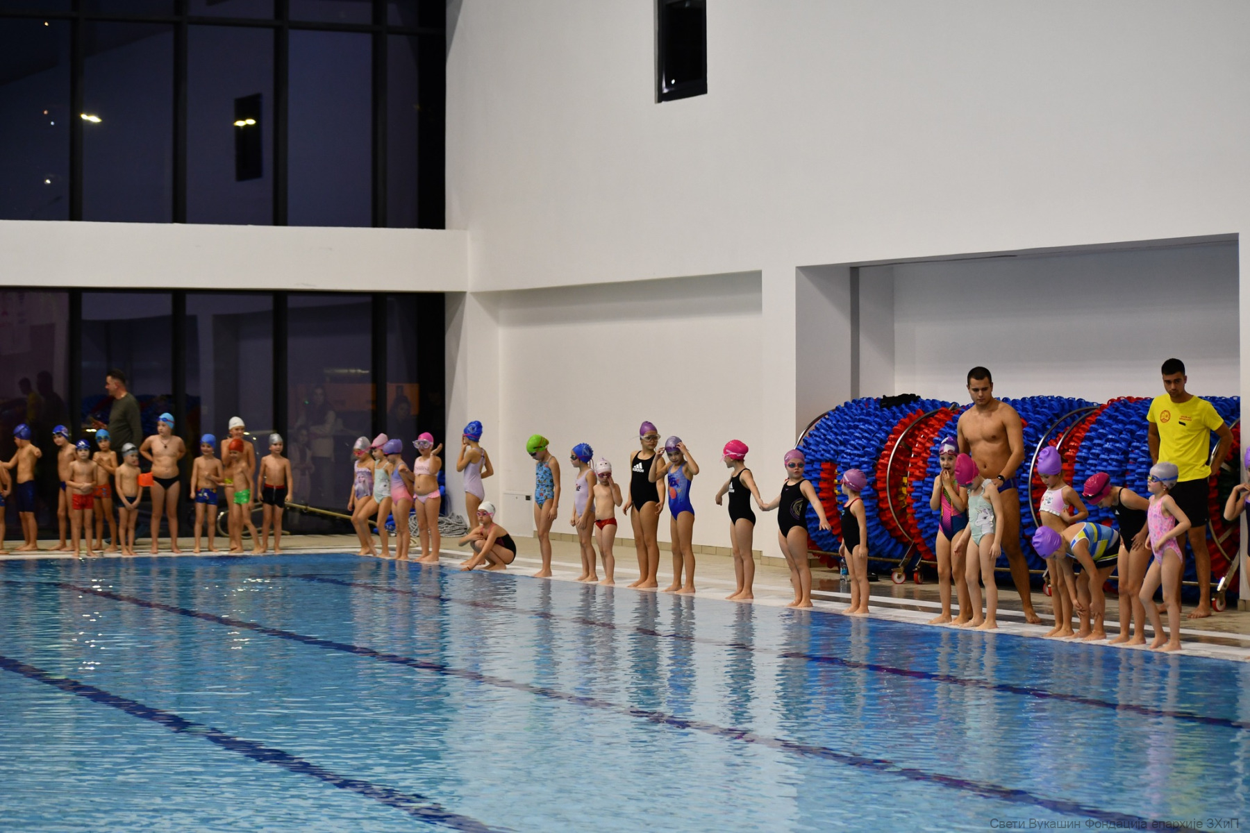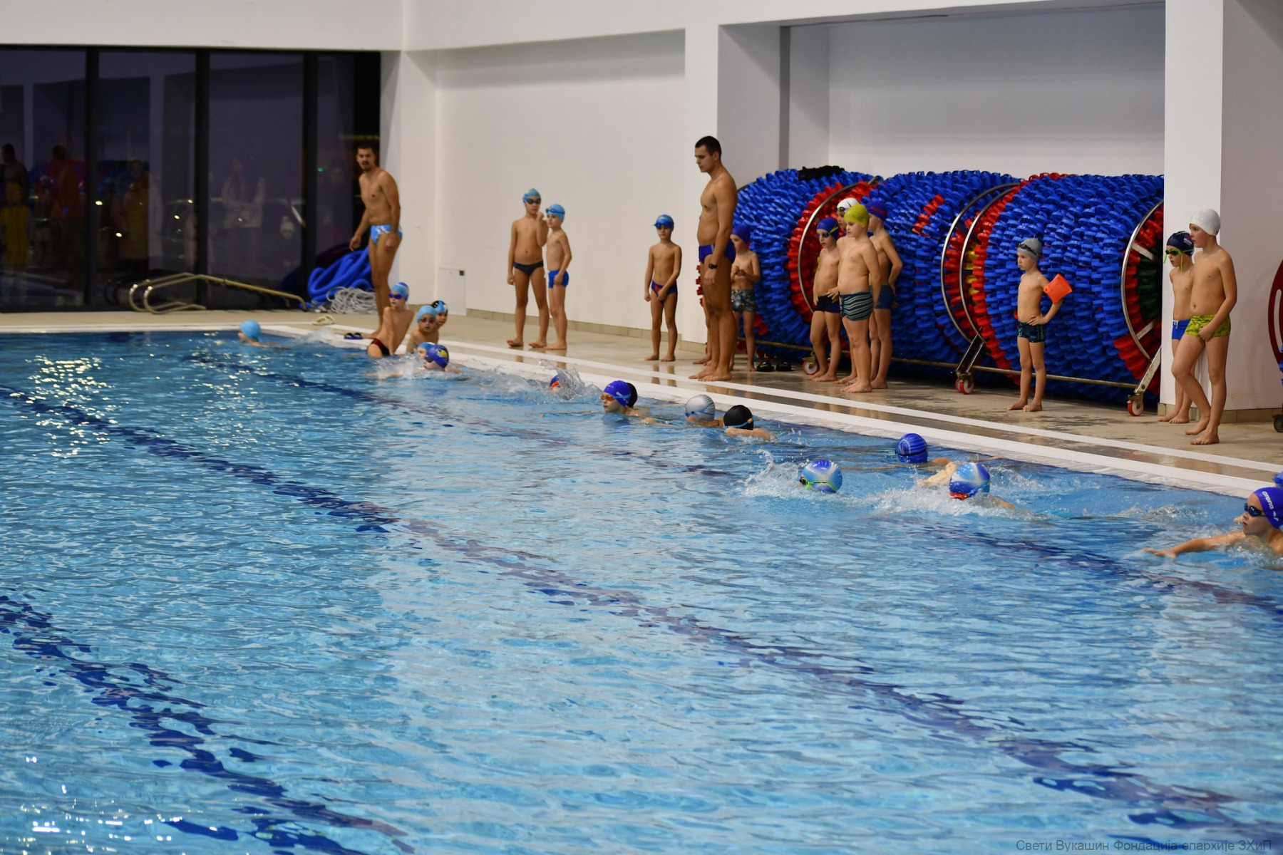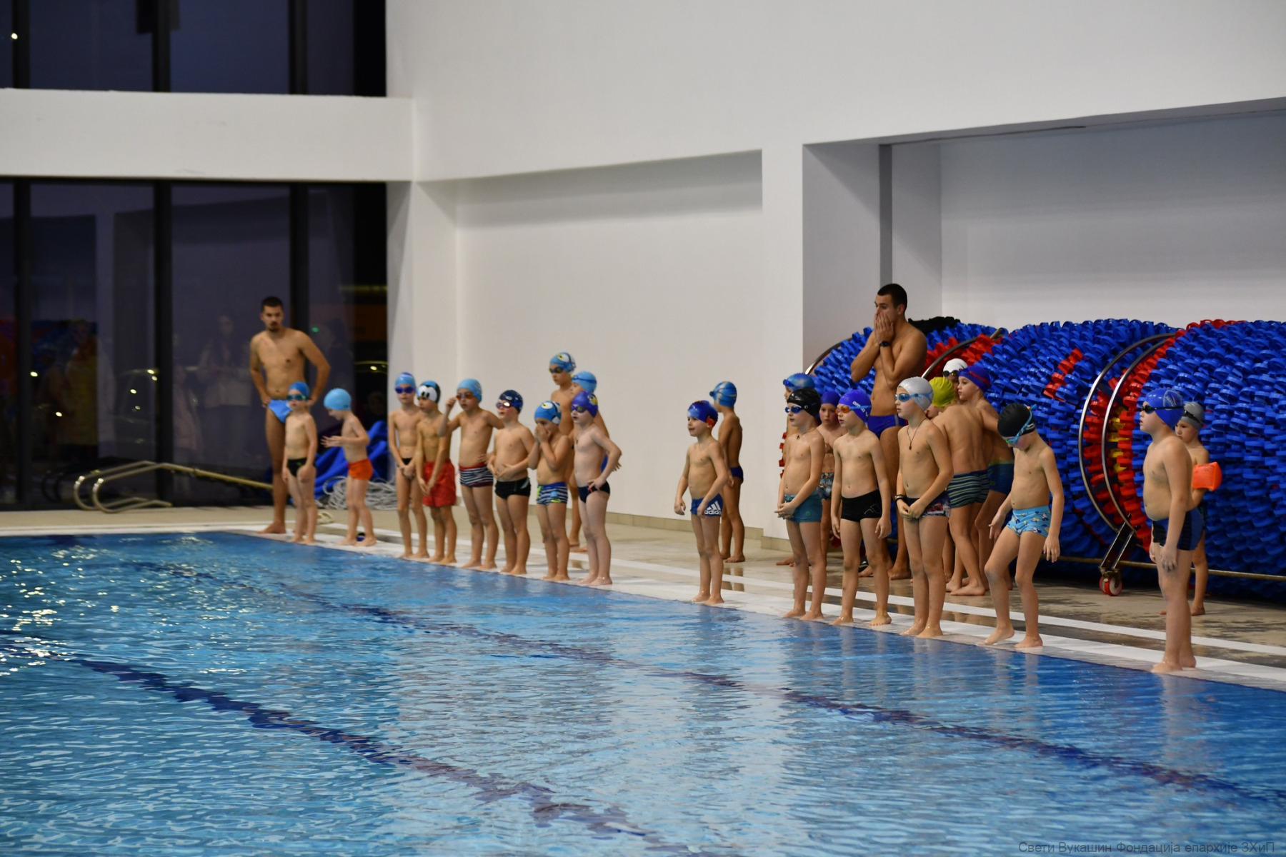 Фондација „Свети Вукашин“ трећу годину заредом организовала је Богојављенско пливање за Часни крст за најмлађе учеснике у затвореном базену у Требињу.