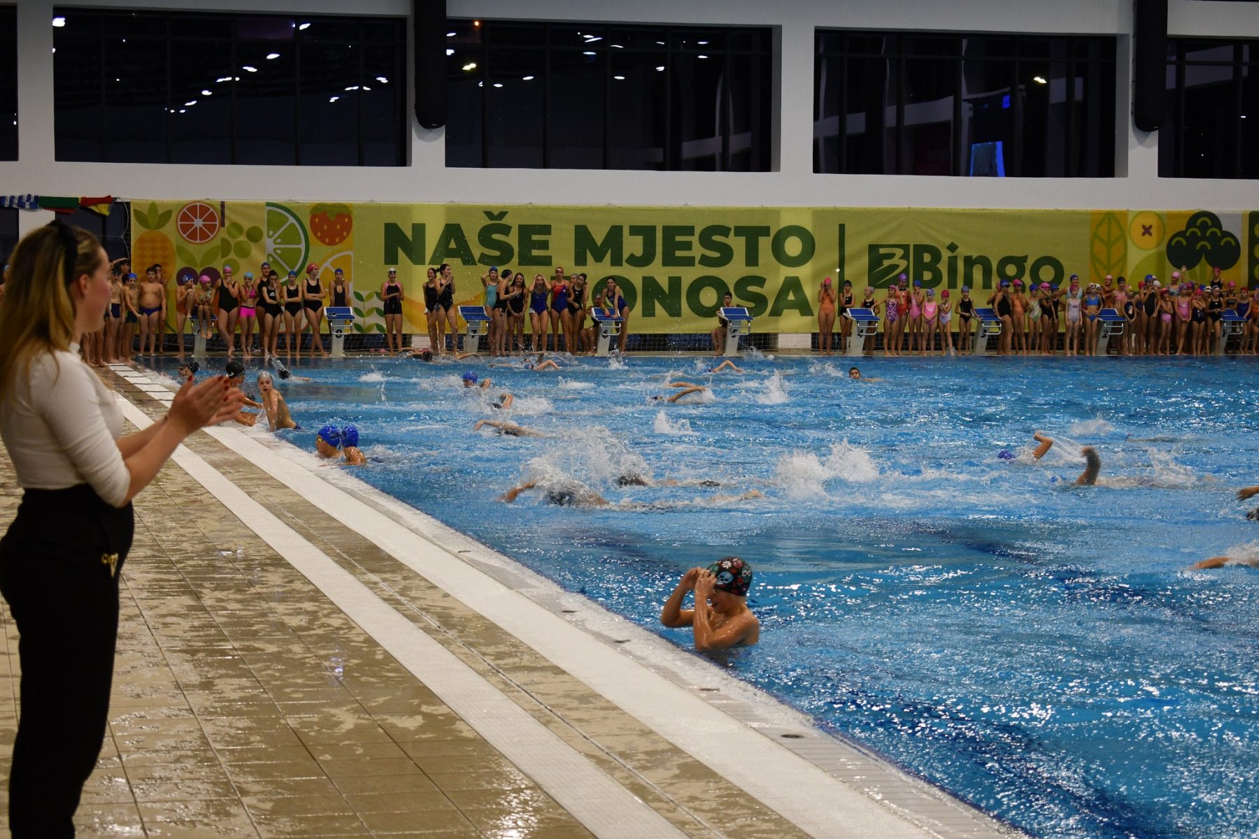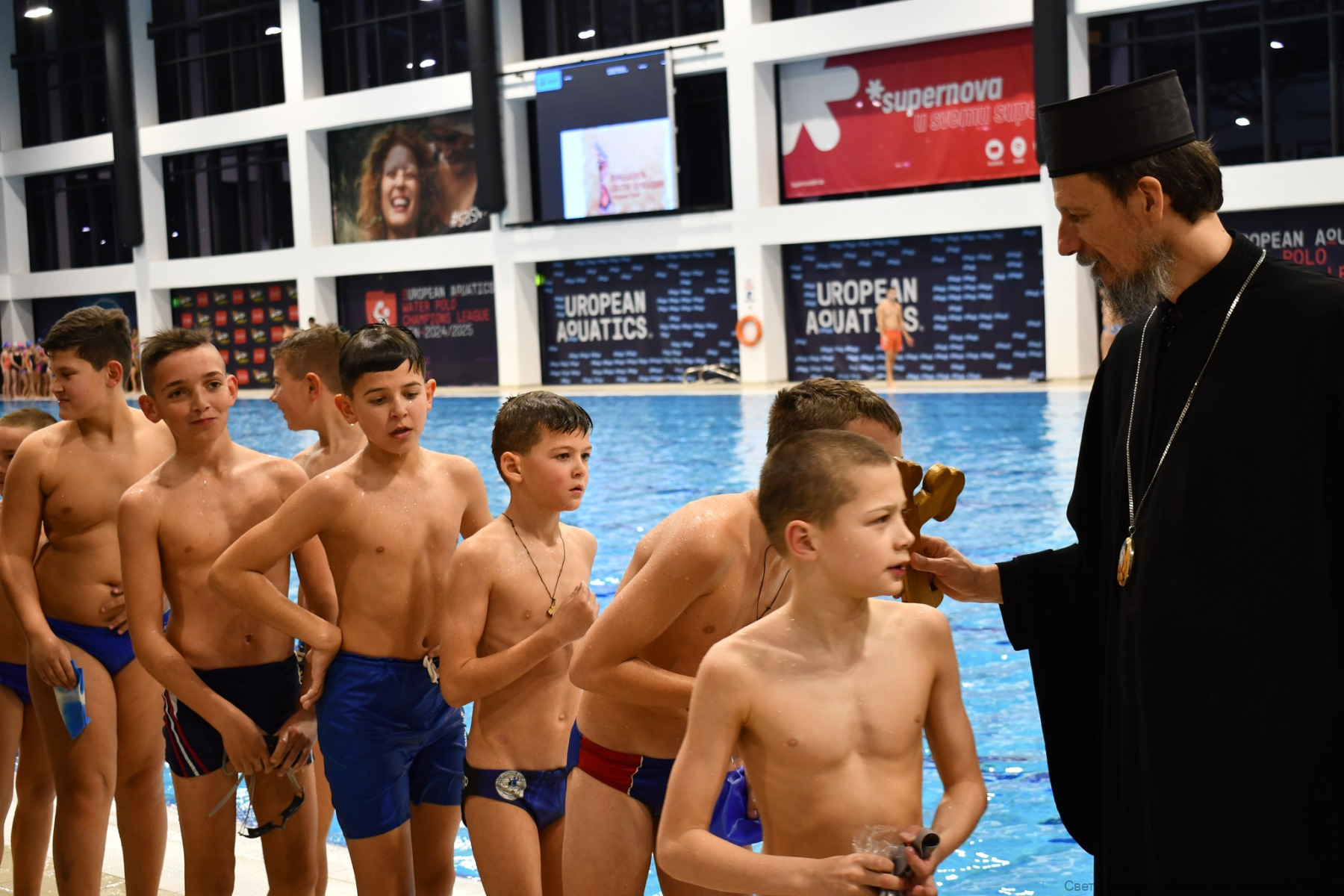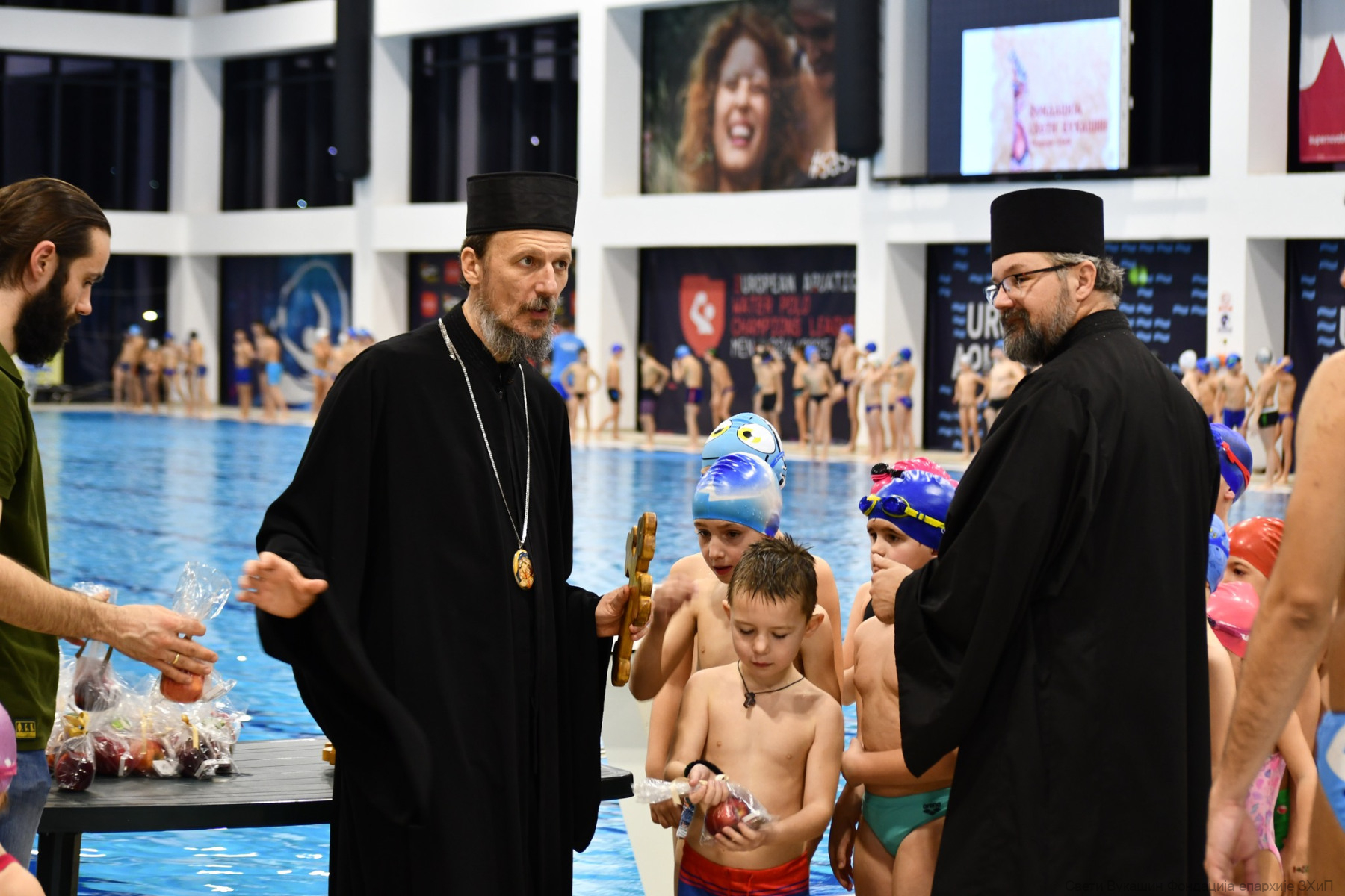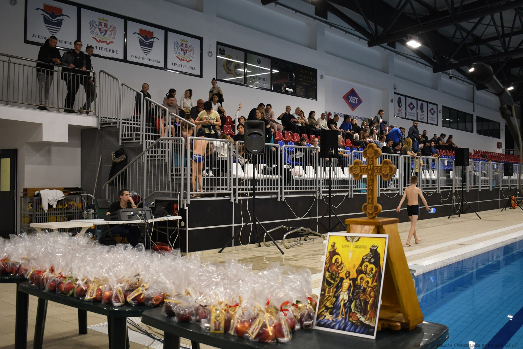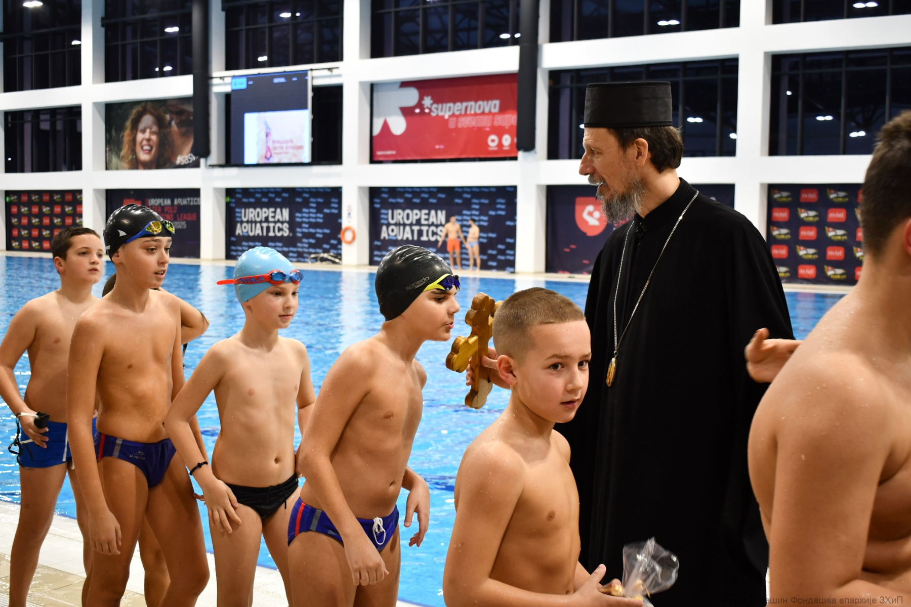 Фондација „Свети Вукашин“ трећу годину заредом организовала је Богојављенско пливање за Часни крст за најмлађе учеснике у затвореном базену у Требињу.